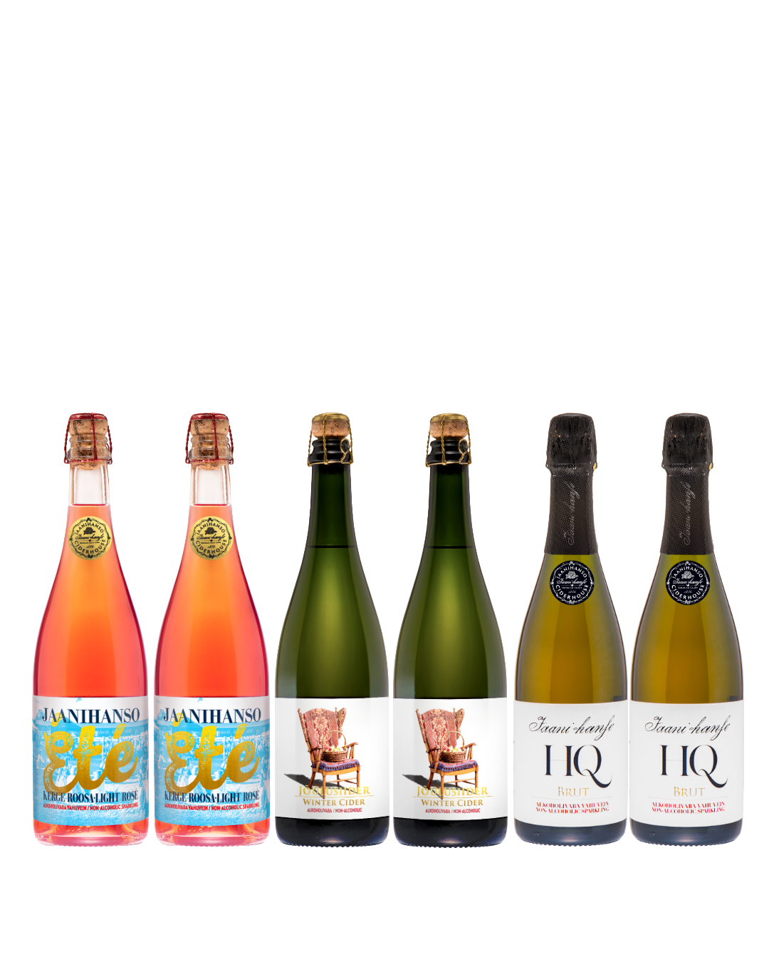 Valikus on 6 pudelit Jaanihanso alkoholivabu vahuveine