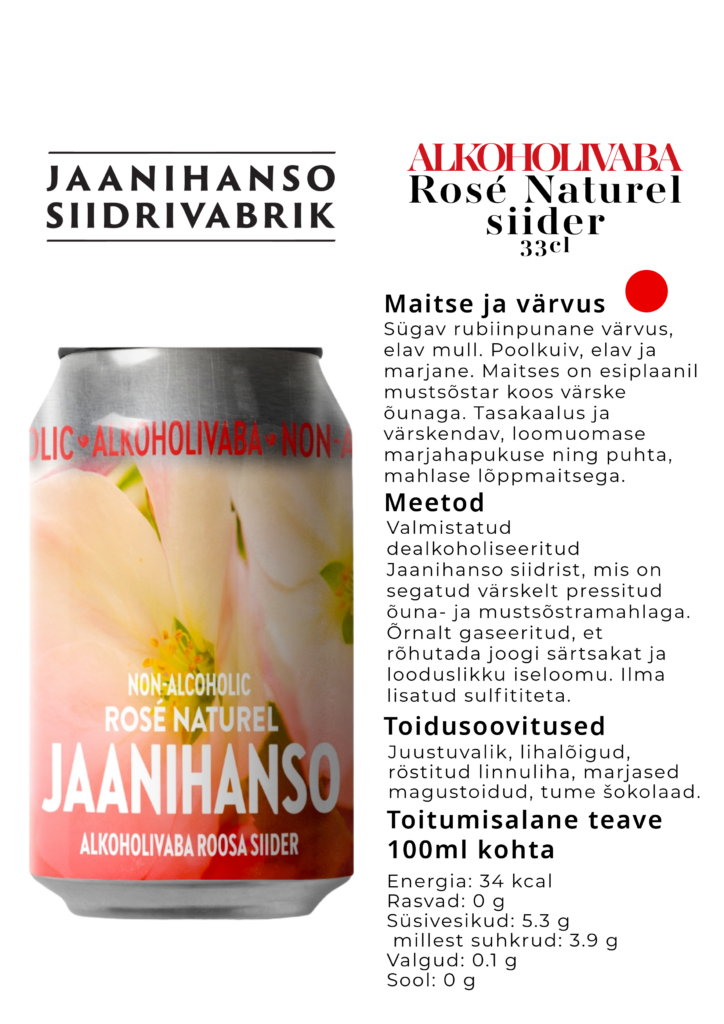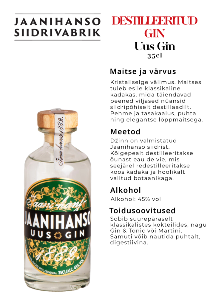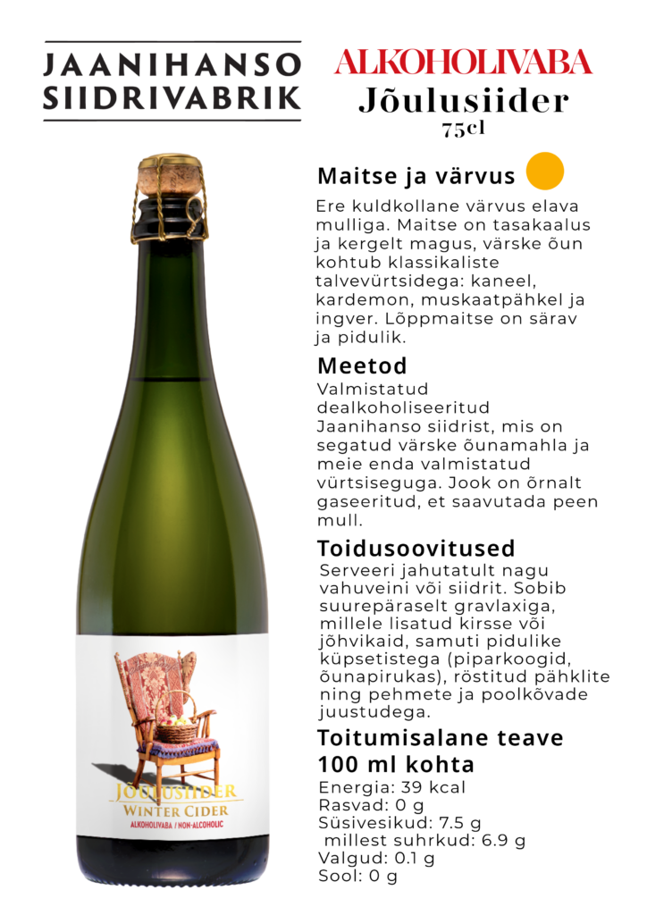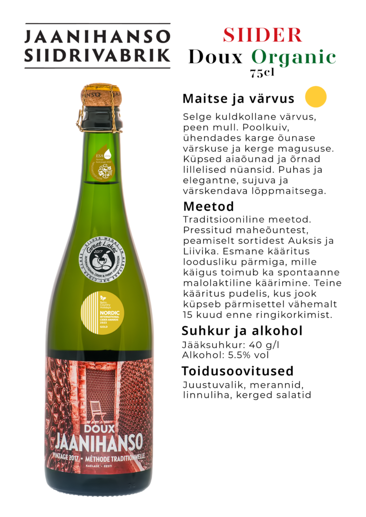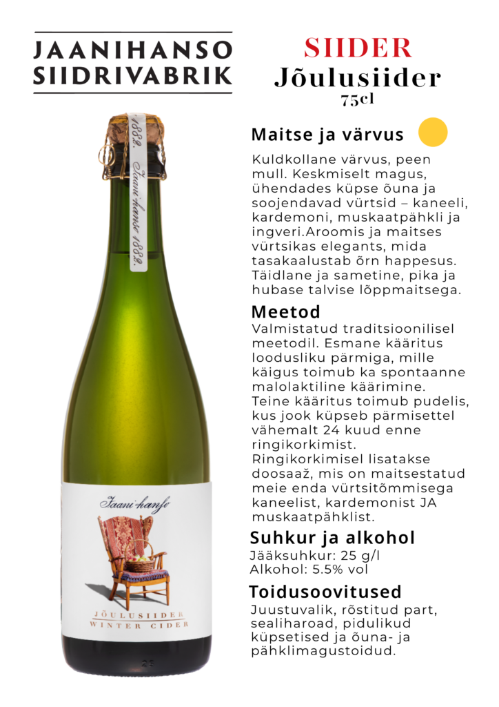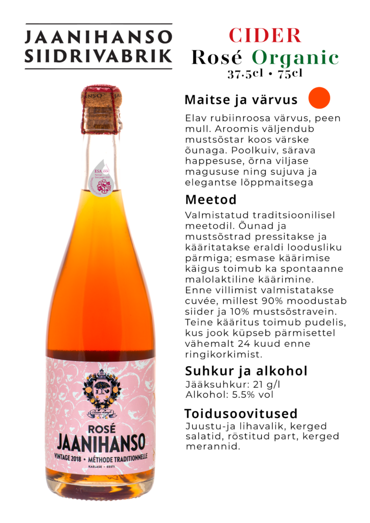 Jaanihanso on väike pereettevõte, kes esimesena Eestis alustas kohalikest puuviljadest ja marjadest kvaliteetse siidri ja veini väiketootmist. Me väärindame traditsioonilisi Eesti aiasaadusi samamoodi ja samade meetoditega, nagu tehakse parimat šampanjat ning veini. Meie eesmärk on läbi kompromissitu kvaliteedi pakkuda naudingut niisama palju kui inspiratsiooni ja rõõmu oma sõpradele ja külalistele ja kõigile, kes Jaanihanso tooteid proovivad.