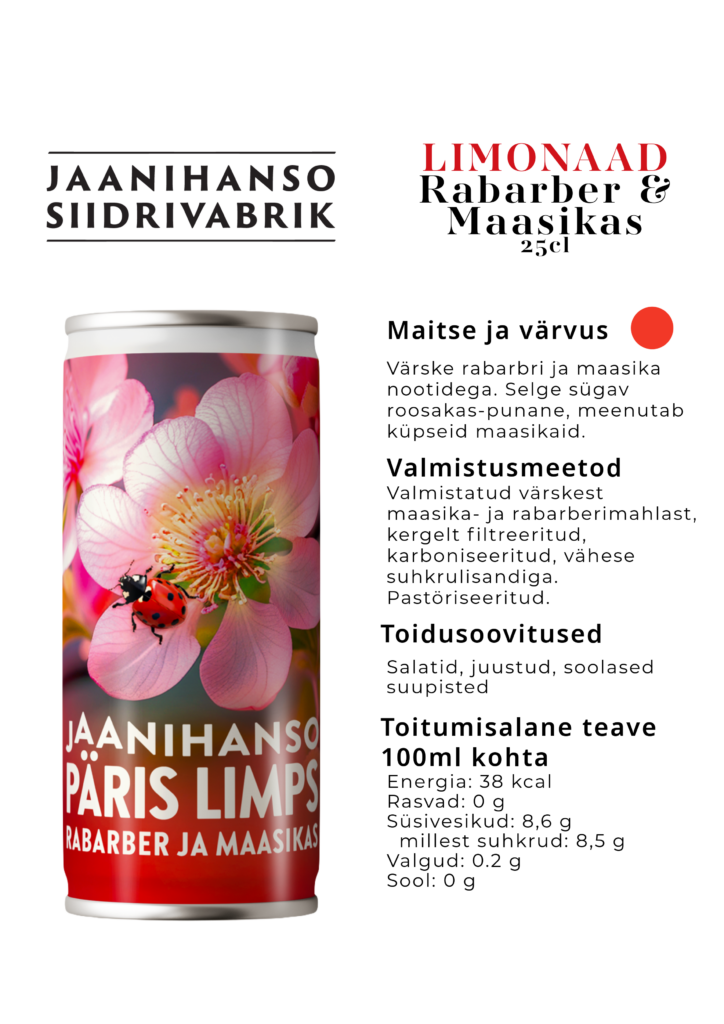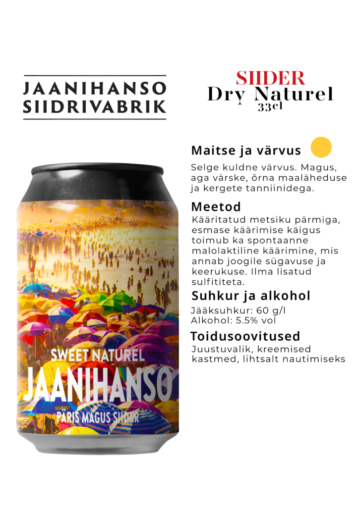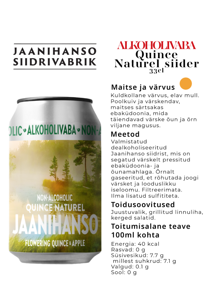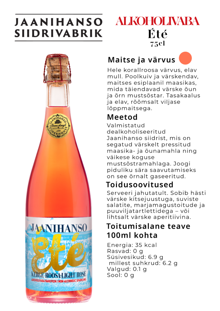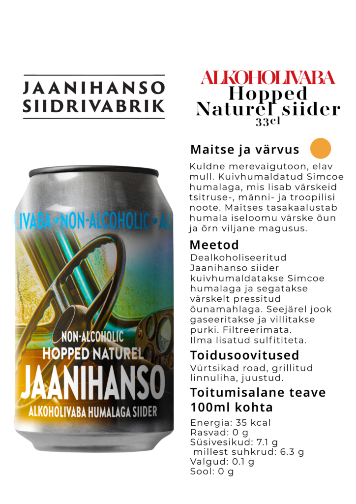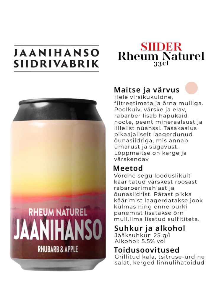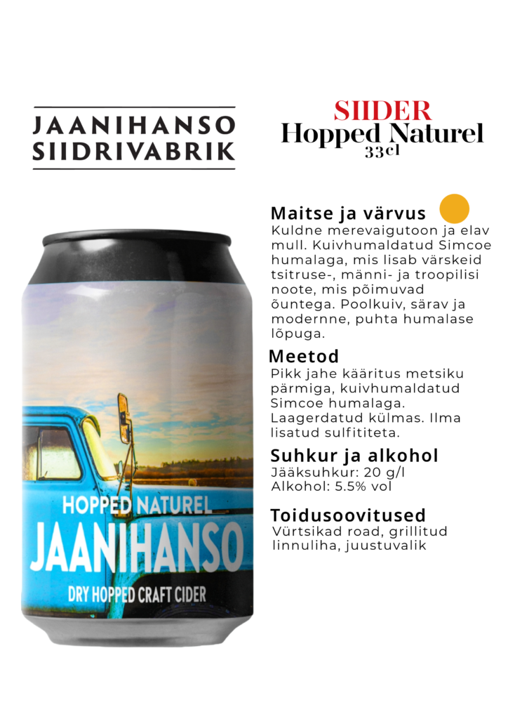 Jaanihanso on väike pereettevõte, kes esimesena Eestis alustas kohalikest puuviljadest ja marjadest kvaliteetse siidri ja veini väiketootmist. Me väärindame traditsioonilisi Eesti aiasaadusi samamoodi ja samade meetoditega, nagu tehakse parimat šampanjat ning veini. Meie eesmärk on läbi kompromissitu kvaliteedi pakkuda naudingut niisama palju kui inspiratsiooni ja rõõmu oma sõpradele ja külalistele ja kõigile, kes Jaanihanso tooteid proovivad.